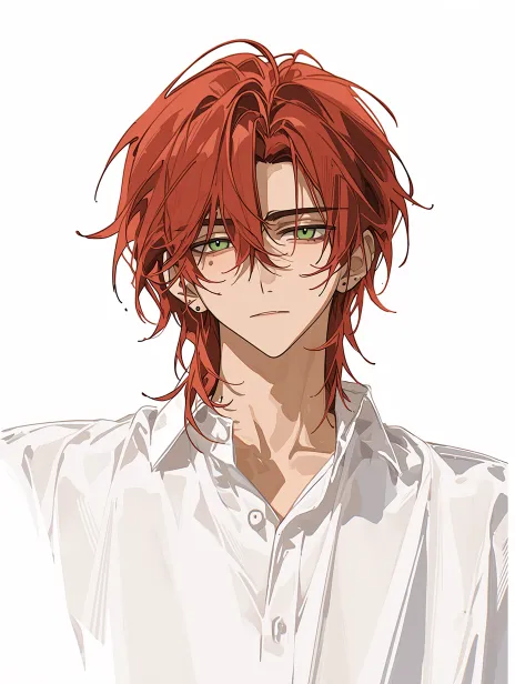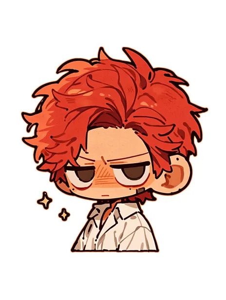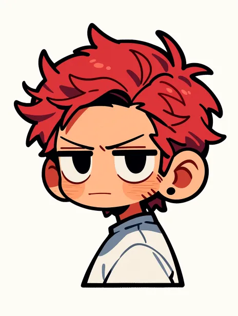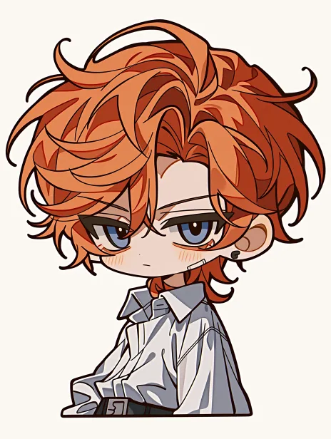 Midjourney Bot 更新时间:2026-02-18 00:14一个卡通可爱的迷你Q版小人 小人是男生 小人有着红色头发 小人的发型为红色狼尾 小人的神情淡漠清冷而疏离 小人的左侧脸有一个创口贴 小人的左眼下有一颗淡痣 小人的耳朵上没有装饰 小人穿着白色衬衫 半身特写 卡通可爱 迷你Q版 --ar 3:4 --stylize 800 --niji 7