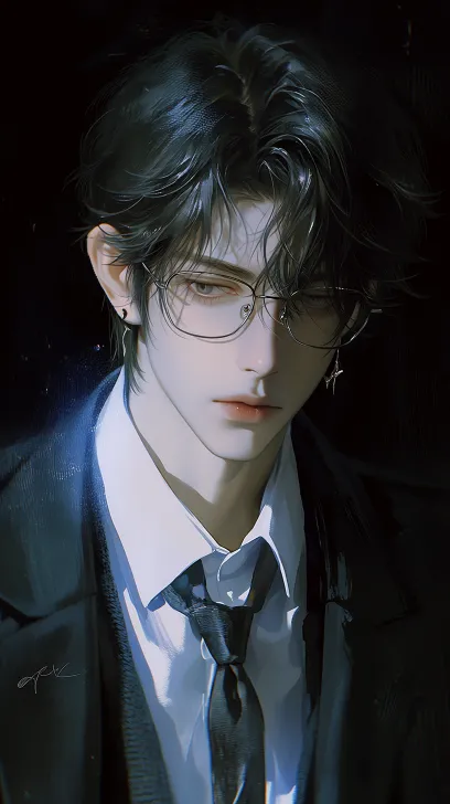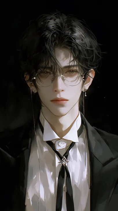 Midjourney Bot 更新时间:2026-02-18 00:18风格鲜明的男性角色。黑色短发,少爷范,冷酷冷峻,阴郁;耳饰,身穿白衬衫制服,马甲,西装领带,正身,正脸,眼镜,抽象不显眼的黑色背景,厚涂精致,色彩搭配大胆且富有张力,进一步丰富了画面的情感表达和艺术质感。细腻厚涂,偏真人,极致超清,极致细节,突出人物,画面华丽,色彩丰富,眼神温柔,厚涂CG。写真感 --ar 9:16 --stylize 555 --niji 7