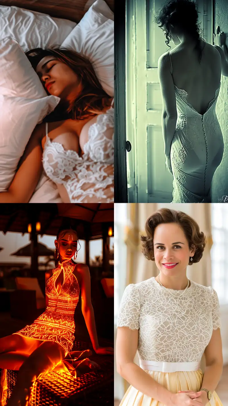 Midjourney Bot 更新时间:2024-07-27 00:09Portrait photography of an Asian woman wearing a dress indoors, with a lazy posture, light makeup, dark hair, warm color tone, soft lighting, beautiful skin texture, smooth lines, light yellow lace skirt, retro photo style, hazy feeling, medium distance. --v 6.0 --ar 9:16