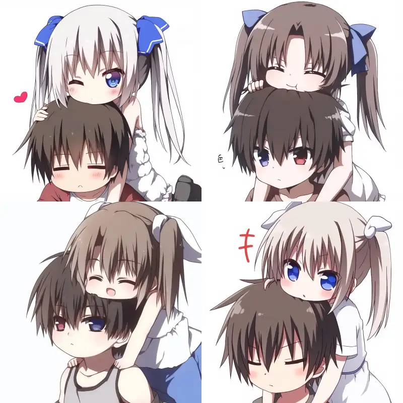 Midjourney Bot 更新时间:2024-07-27 00:05A little girl in a white long dress is holding a boy and kissing him --sref