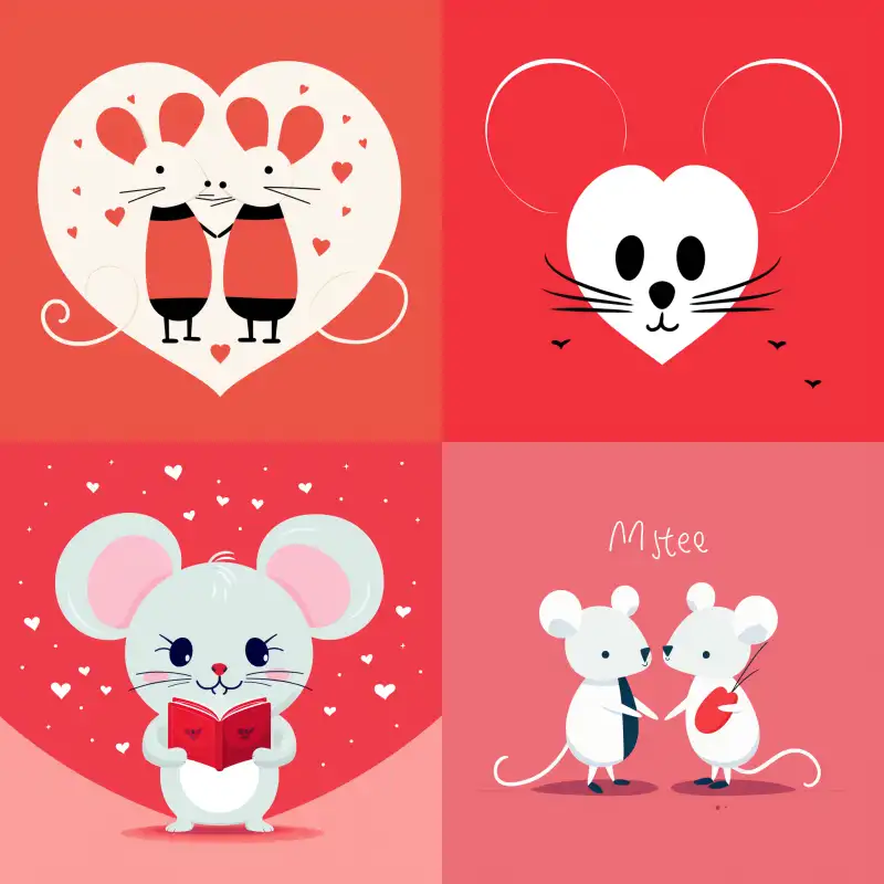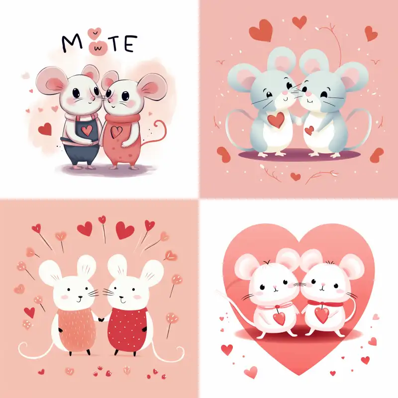 Midjourney Bot 更新时间:2024-07-20 00:00Matisse style with love love text and cute cartoon romantic sweet two mouse simple artwork --v 5.2 --ar 1:1