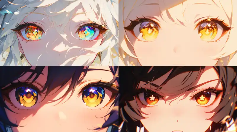 Midjourney Bot 更新时间:2024-07-17 00:06Two eyes of the Genshin Impact character hutao, white background, animation style, light color --niji 6 --ar 16:9 --s 423
