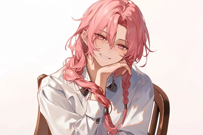 Midjourney Bot 更新时间:2026-02-17 00:21一个漂亮的好似女人的男人,粉色头发,狐狸眼,玫红色眼睛,左侧扎麻花辫,顺下来混到右边合成一束披肩马尾,笑着看镜头,坐在椅子上,现实校园风格,高级杂志风,光影大师,电影构图,中景,杰作,最高质量,8K分辨率:6 --ar 9:6 --stylize 100 --niji 7