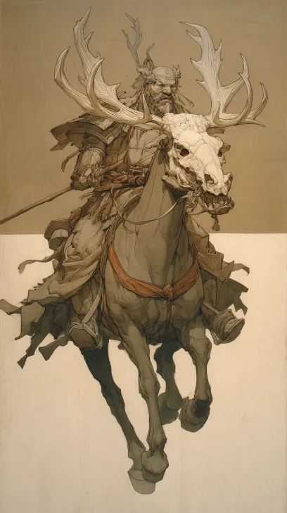 Midjourney Bot 更新时间:2026-02-17 00:51一匹高大强壮威武的马,长着一个驼鹿的角,油画风格,大师级构图,全景图 --ar 9:16 --v 7 --style raw --stylize 100