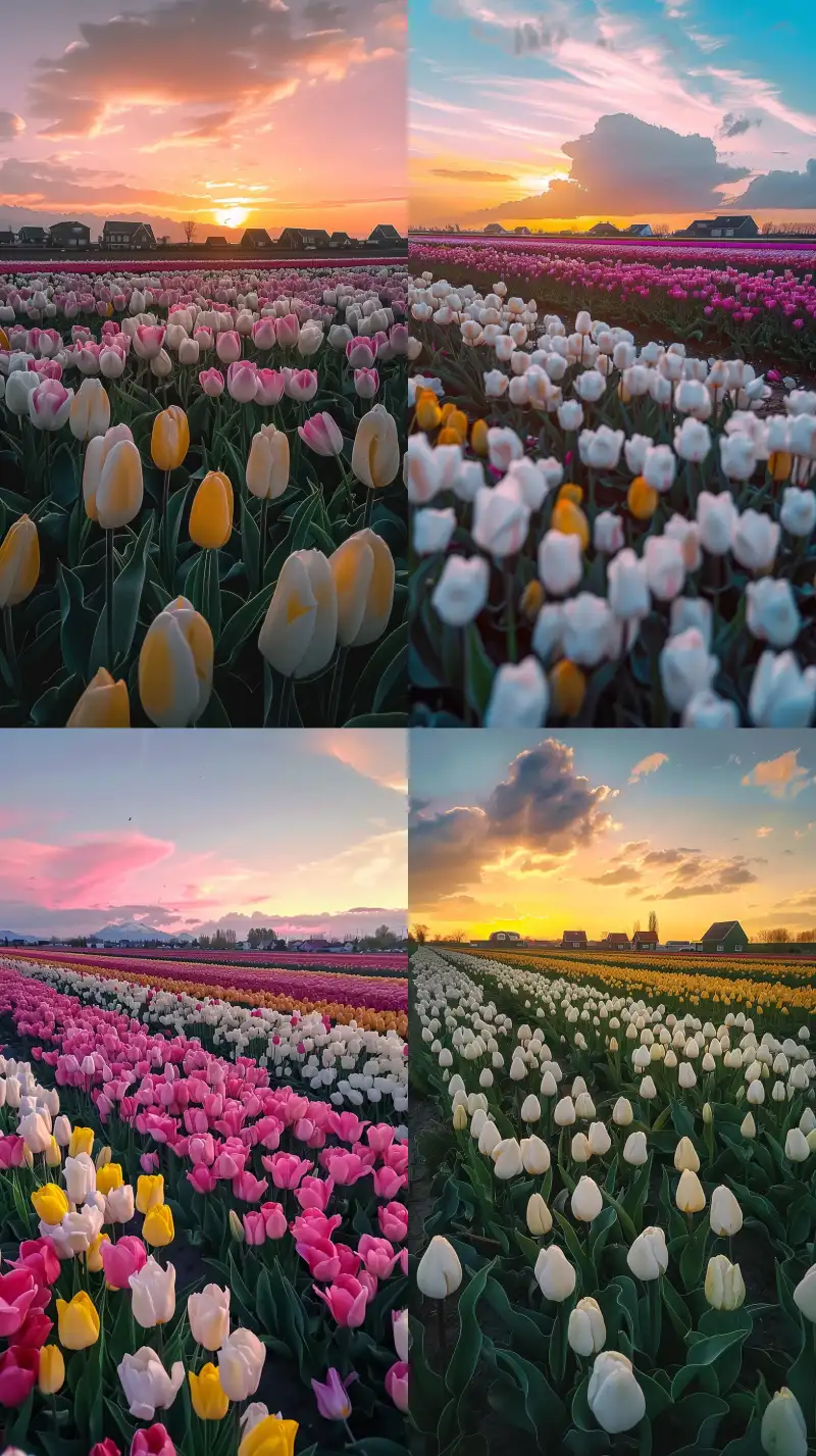 Midjourney Bot 更新时间:2024-07-12 00:02Master level composition, a large sky, sunset, distant houses, tulip flower sea, white tulips, yellow tulips, pink tulips, real scene shooting, high-definition picture quality, aerial perspective --v 6.0 --ar 9:16 --style raw