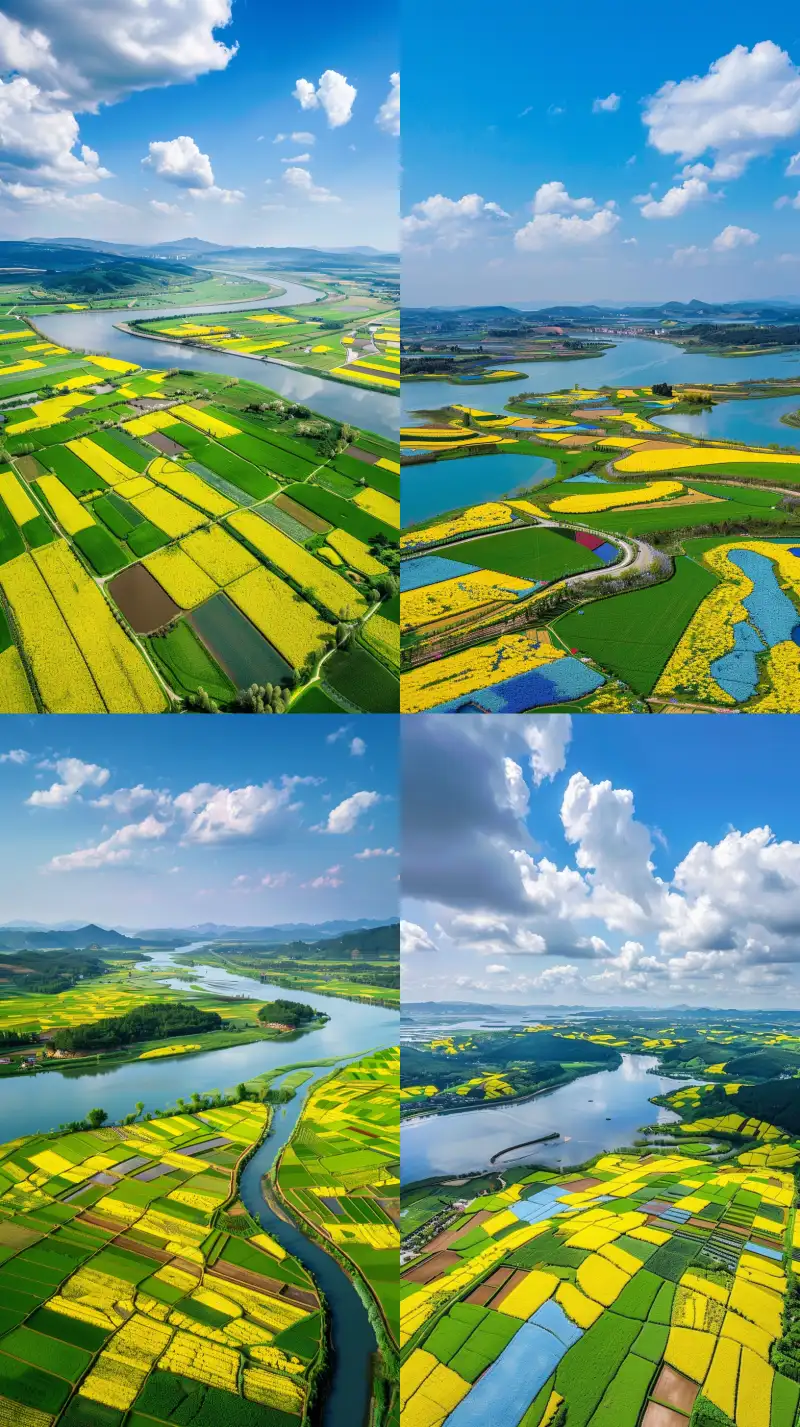 Midjourney Bot 更新时间:2024-07-12 00:03In China's rapeseed fields, there is a colorful phoenix pattern on the rapeseed flower fields. Vivid and lifelike, surrounded by rivers and lakes, with blue sky and white clouds in the background, high-definition, bird's-eye view, --v 6.0 --ar 9:16 --style raw