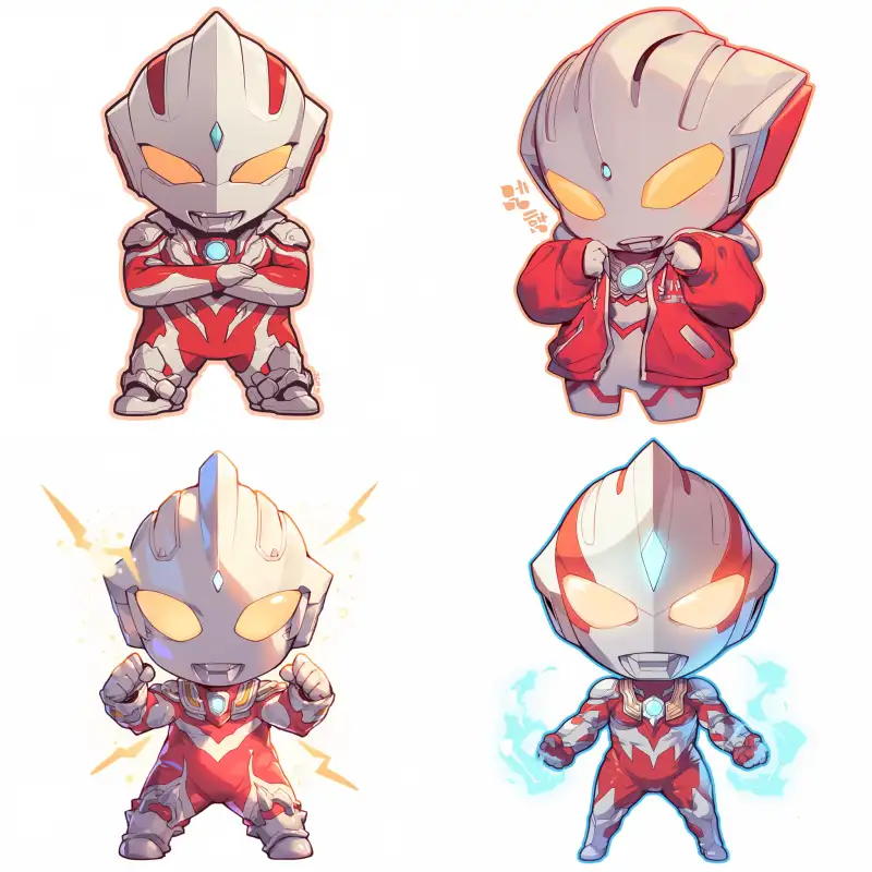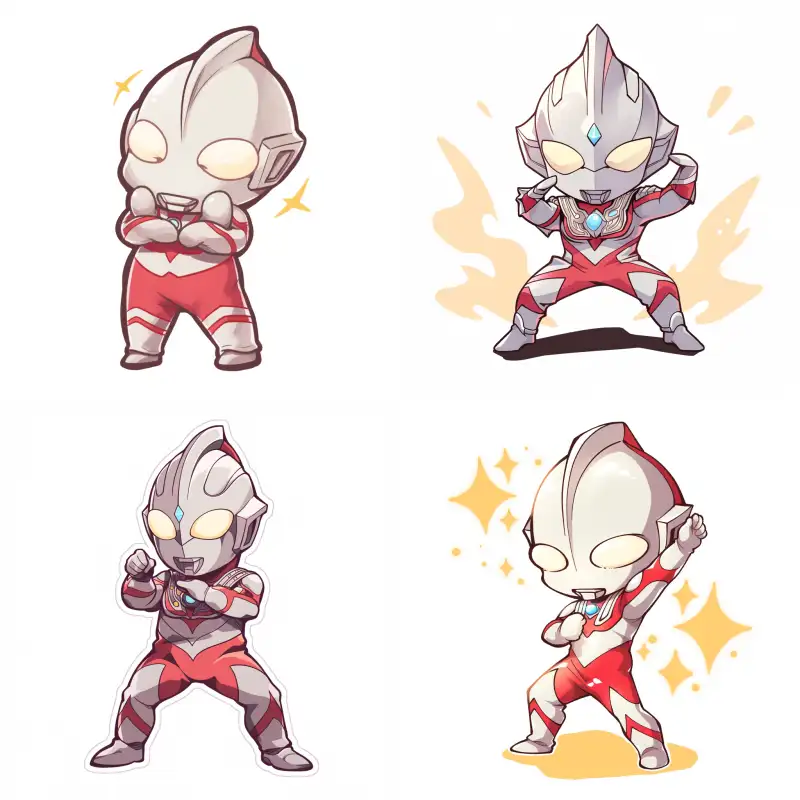Midjourney Bot 更新时间:2024-07-09 00:06Kawaii chibzi Ultraman, Dijia Ultraman, white background sticker, kpop anime style, Korean online cartoon style, standing posture, full body --niji 6 --ar 1:1 --style raw