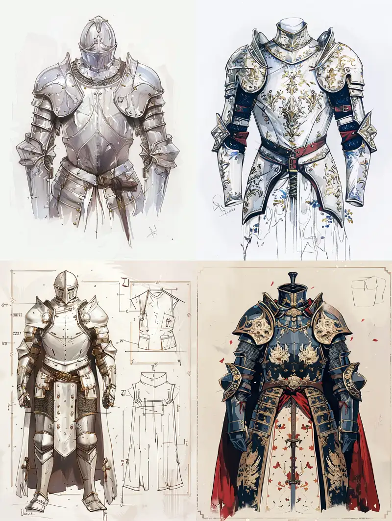 Midjourney Bot 更新时间:2024-07-05 00:06Design the upper body of an Eastern scale armor from medieval Europe, with a clothing design draft, white background, medieval, oil painting style, and manga. flat painting,2D, Only the upper body part without the lower body, with clear lines. The upper body clothing exhibition is placed on the table, cartoon style reference sheet --v 6.0 --ar 3:4 --no Head, head, helmet, lower body, buttocks, legs, thighs, feet, --s 438