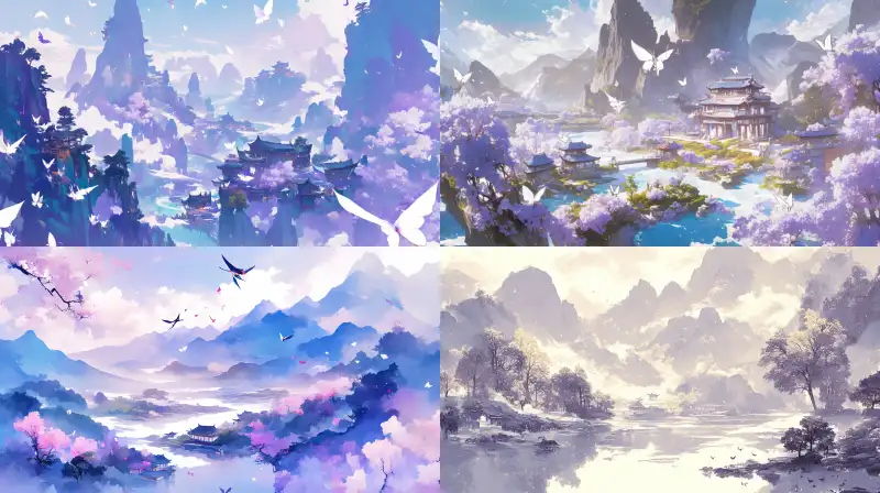 Midjourney Bot 更新时间:2024-07-05 00:07A paradise on earth, with mountains and water, flowers and butterflies, white and purple with more butterfly elements, valleys, small houses, and faintly visible roads. Blank spaces, close-up shots, ink painting, immortality, clean, Chinese style, strong light and shadow --niji 6 --ar 16:9