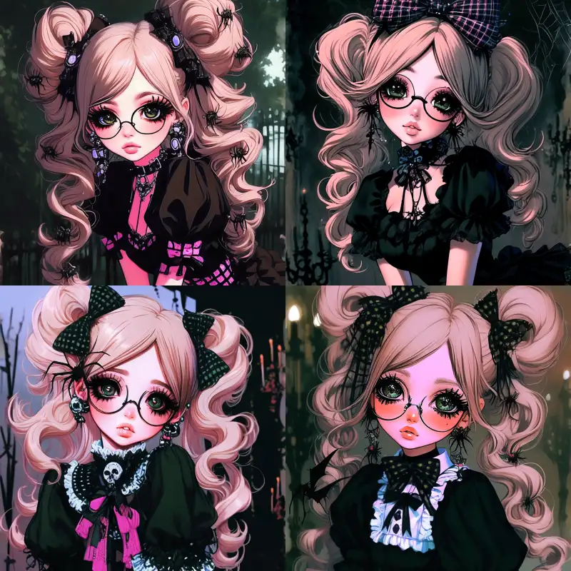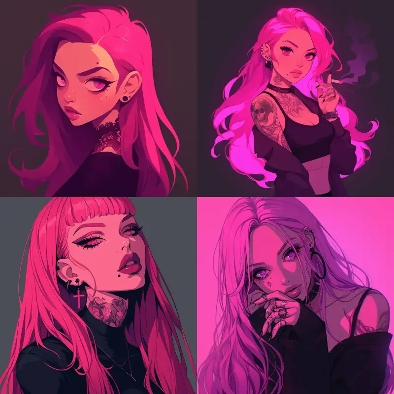 Midjourney Bot 更新时间:2024-07-06 00:03A gothic cartoon girl with long pink hair and charming tattoos, dressed in cool clothes. Her eyes are deep and mysterious, and the corners of her mouth are slightly upturned, displaying a rebellious and unique personality. The overall color tone is mainly black and pink, emitting a modern yet slightly mysterious atmosphere --niji 6 --ar 1:1