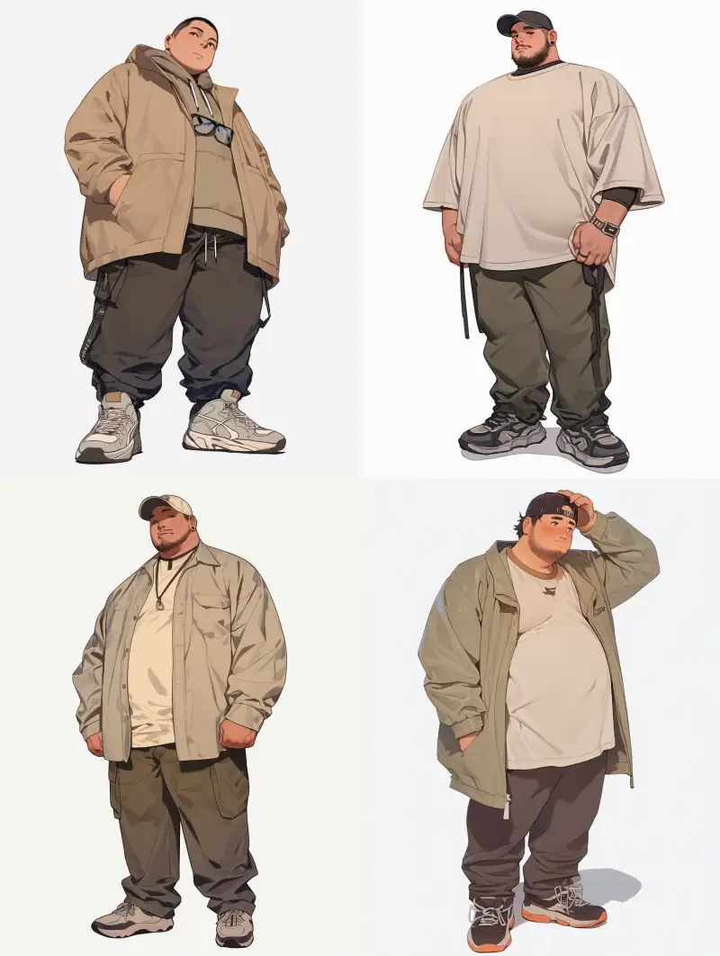 Midjourney Bot 更新时间:2024-07-06 00:02A full body illustration of an overweight man wearing street clothing on a white background, detailed character design in Xiao's style, light gray and deep beige, plain brushwork, simple lines, and plain colors --niji 6 --ar 3:4