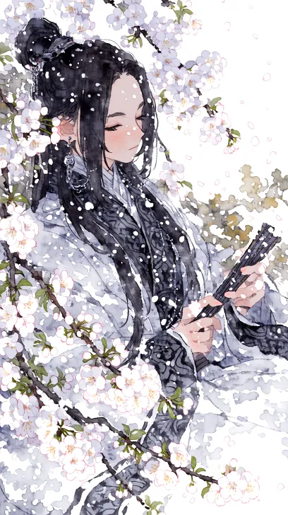 Midjourney Bot 更新时间:2026-02-16 00:02杰作,品质上乘,具有电影感,[一位成熟、容貌出众、身材健美、气质非凡的男子,五官轮廓分明,双眸深邃而清澈,一头黑色长发高高扎起,宛如一头优雅的黑天鹅,] [冷清、慵懒且极具魅力的气质,几分媚态,[双手各拿舞扇],[一件风格独特的月白色暗纹古装长袍,线条简洁流畅],半透明的绘画,2.5D效果,深受明代人物画和唐代壁画线条艺术的影响,结合水墨渲染,先进的古典中式CG,[清晰、明亮的自然春日光线营造出丰富多样的梦幻色彩:柔和的粉白色桃花、优雅的白色长袍、背景为淡淡的青色、淡紫色和米色,淡蓝色的光影和浅粉色的斑驳阴影,飘落的花瓣从粉色渐变为半透明],令人惊叹的构图,色彩丰富且富有诗意的东方美学,强调飘落花朵的层次色彩、清晰的光线以及浪漫而缥缈的氛围。 --ar 9:16 --stylize 800 --niji 7 --profile o8k5wmx