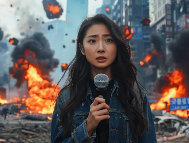 Midjourney Bot 更新时间:2026-02-16 00:06画面前景是一个拿着话筒的中国年轻女人,一脸凝重正在着急的讲述着什么,背景是现代城市广场上,无数颗带火的陨石从高空砸向地面,地面上到处都是火焰,倒塌的建筑,和逃命的人,整体看起来非常混乱,有一种世界末日的感觉 --ar 4:3 --v 6.0 --stylize 600 --sref https://images.gogpt.vip/aigf/m_origin/20260216/2032203/bsqh2oyttmg10eh9.jpeg --sw 155
