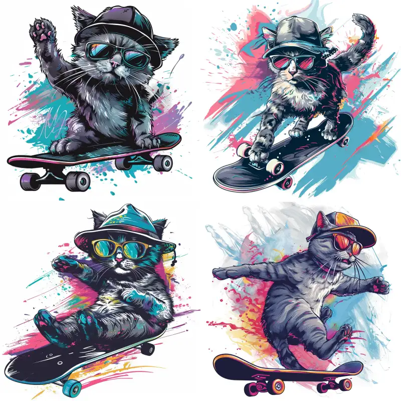Midjourney Bot 更新时间:2024-07-05 00:04Interesting T-shirt design, a humanoid cat wearing sunglasses and a hat riding on a skateboard, artist style vector illustrations, and colorful graffiti style. The colors used in artworks include dark gray and light blue. Painted in the artist's style, with an isolated white background and t-shirt print --v 6.0 --ar 1:1