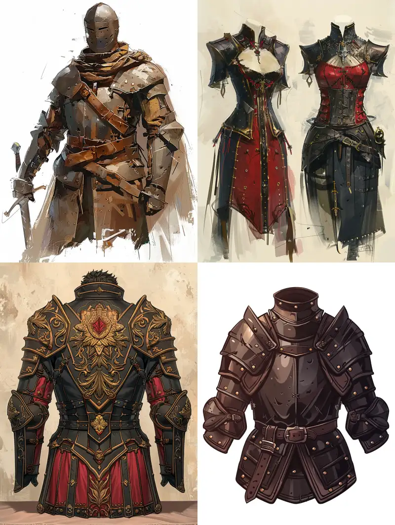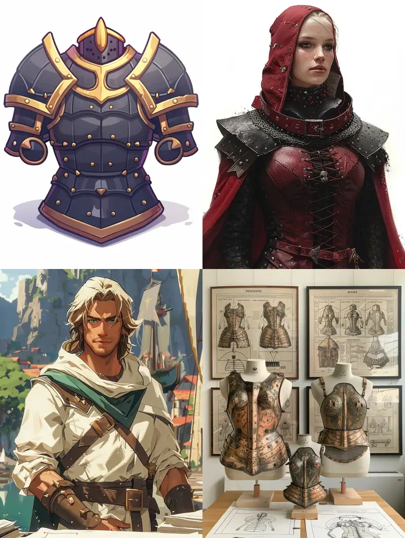 Midjourney Bot 更新时间:2024-07-05 00:04Design the upper body of a medieval European leather armor, clothing design draft, white background, medieval, oil painting style, comic. flat painting,2D, Only the upper body part without the lower body, with clear lines. The upper body clothing exhibition is placed on the table, cartoon style reference sheet --v 6.0 --ar 3:4 --no Head, head, helmet, lower body, buttocks, legs, thighs, feet, --s 684 --c 44