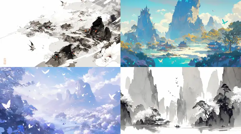 Midjourney Bot 更新时间:2024-07-05 00:04A paradise on earth, with mountains and water, flowers and butterflies, white and elegant, with more butterfly elements, valleys, small houses, and faintly visible roads. Blank space, close-up, ink painting, Xianxia, clean, Chinese style, strong light and shadow --niji 6 --ar 16:9