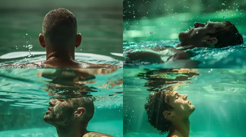 Midjourney Bot 更新时间:2024-07-03 00:05The man reveals his side face and ears, swimming, backstroke, green water, underwater shooting --iw 1.5 --ar 16:9 --v 6.0