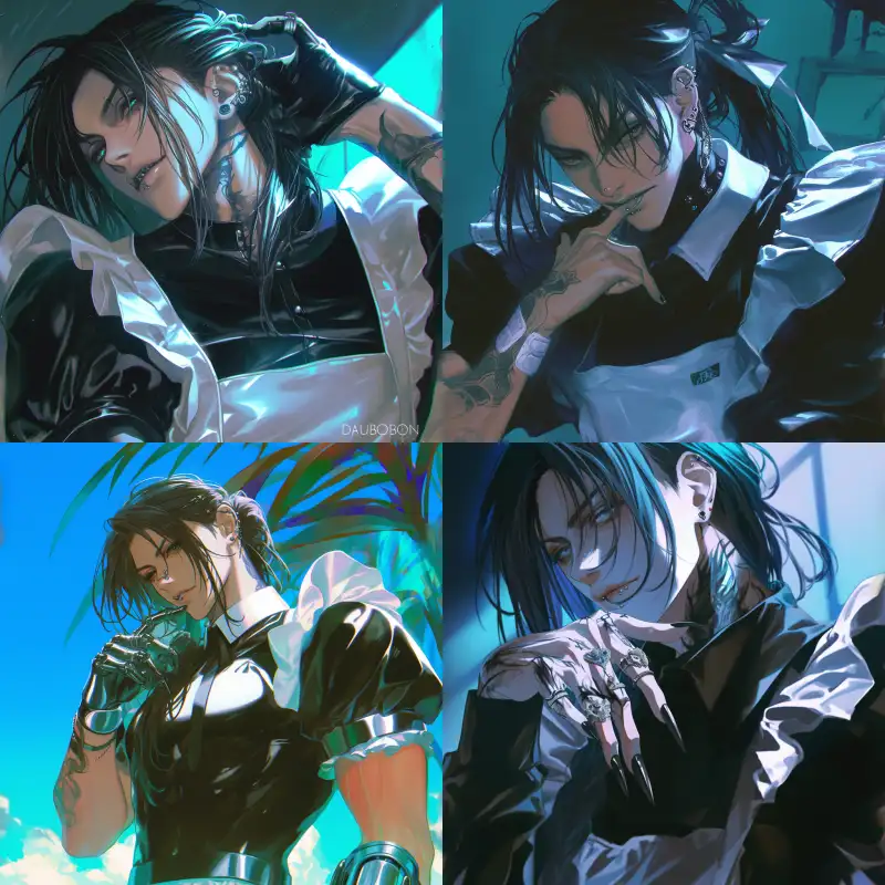 Midjourney Bot 更新时间:2024-07-04 00:01A boy with a tattoo, a maid outfit, lip studs, muscles, futuristic, beautiful fingers, cool, fresh, gothic, subculture, soft light, radiance, atmosphere, exquisite, good figure, cool, artistic, masterpiece, galagame, gyaru, intricate details, very detailed, 4k, 1:1 --sref