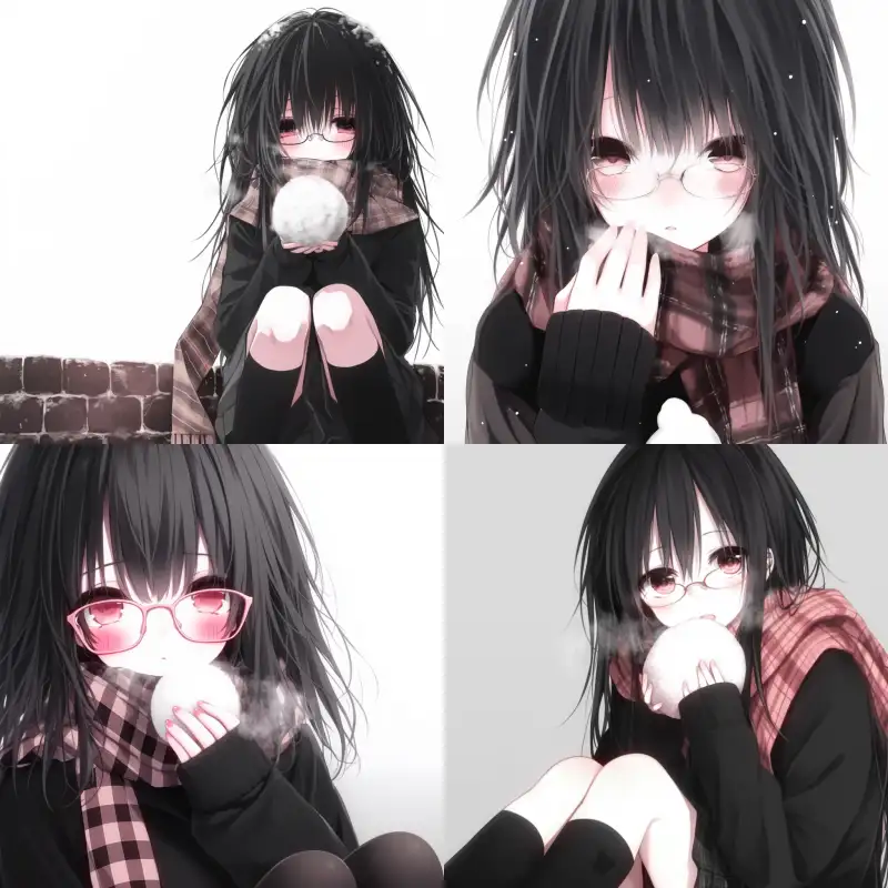 Midjourney Bot 更新时间:2024-07-04 00:02Cute girl holding Kanto cooking in one hand and draped her hand over a scarf. Snowy girl squatting and looking up, with a slight mist on her glasses and a slightly open mouth. Her meatball head, black hair, pink eyes, and simple background --sref
