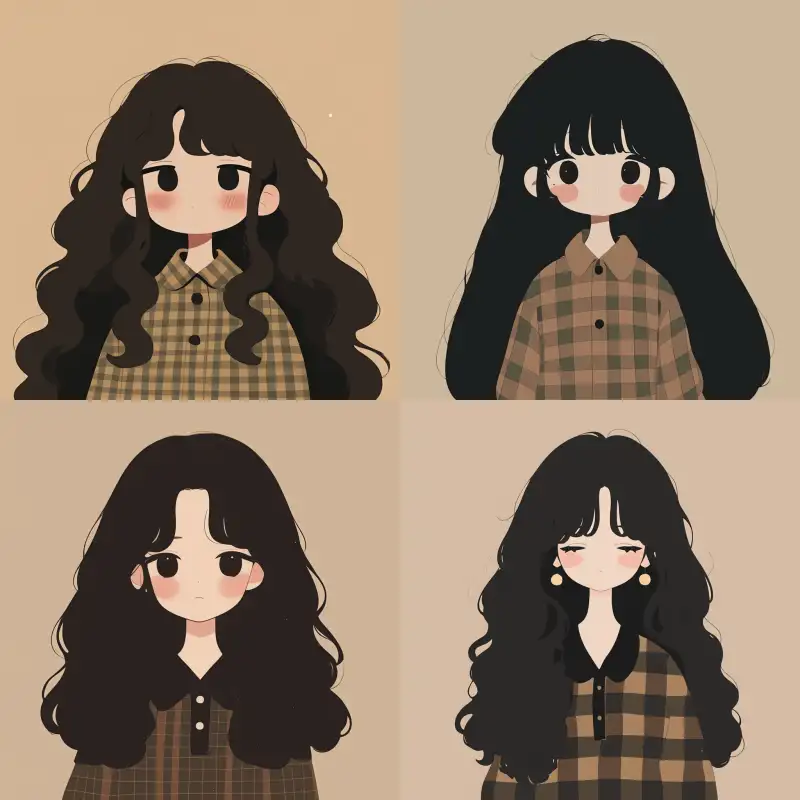 Midjourney Bot 更新时间:2024-06-26 00:05Cute girl, long hair, minimalist, hand drawn comic illustrations, simple color scheme, black long hair. Powder blusher, checkered shirt --sref