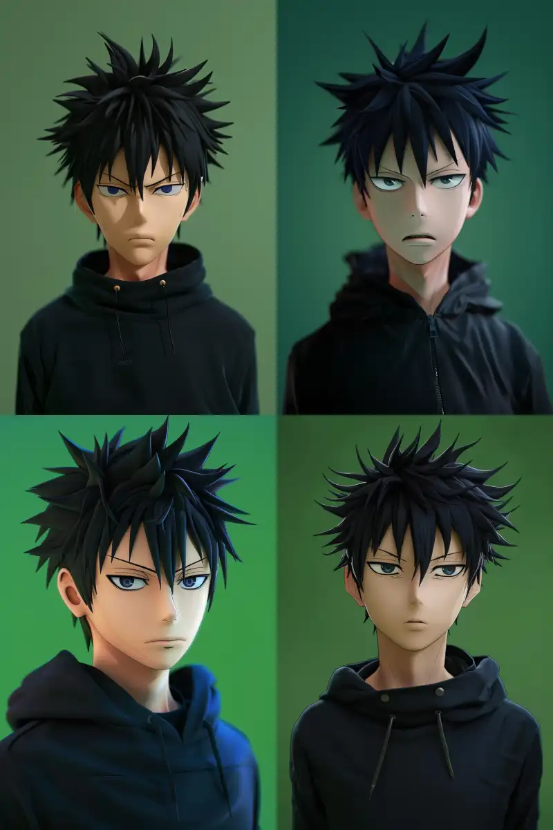 Midjourney Bot 更新时间:2024-06-24 00:033D comic character, a boy with black hair and dark blue eyes, wearing a black top in the style of Julian Caesar, with a green background --cref