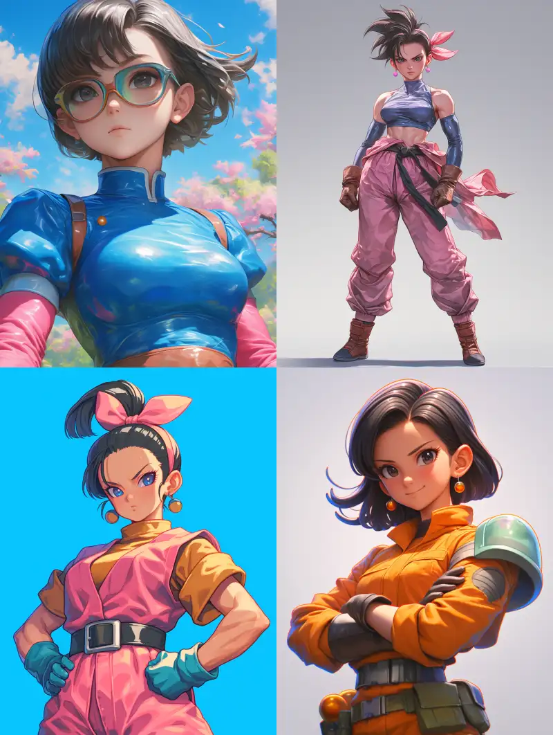 Midjourney Bot 更新时间:2024-06-22 00:02Minamoto Shizuka from Doraemon has the style of a character from Dragon Ball Z, with a hairstyle similar to that of Sun Wukong on the head, LED eyes, and a Saiyan combat suit on her body. The background of Dragon Ball Z in an outdoor open space. The overall style combines the anime style of Dragon Ball Z with a modern sense of technology, showcasing both the bravery and strength of the Saiyan people, as well as the cuteness. In terms of color, the main focus is on metallic colors, supplemented by colorful changes in LED lights, and the use of cool color technology equipment in the background, creating a sharp contrast. The movement is a classic posture in Dragon Ball Z. --s 1000 --ar 3:4 --niji 6