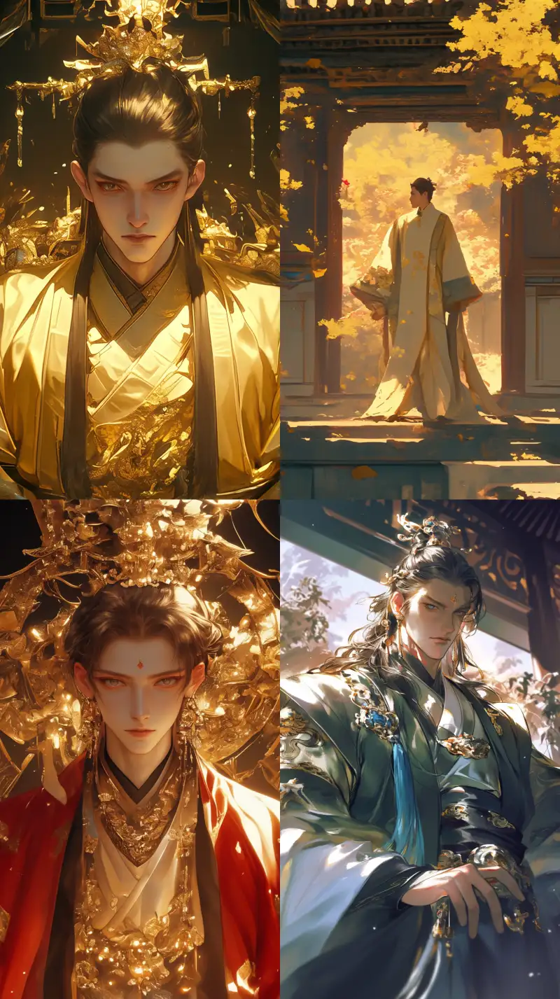 Midjourney Bot 更新时间:2024-06-22 00:03The man is dressed in ancient Chinese attire, with exquisite details, a palace background, symmetrical composition, soft lighting, telephoto lens, low saturation, quiet expression, a gentle breeze brushing his face, and a delicate texture. --ar 9:16 --niji 6