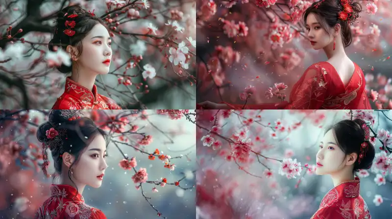 Midjourney Bot 更新时间:2024-06-21 00:03A woman in red from ancient China, gazing into the distance under a cherry blossom tree --ar 16:9 --v 6.0