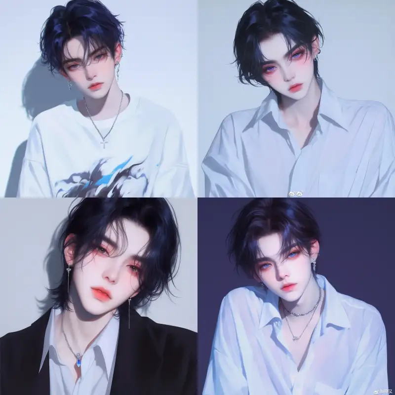 Midjourney Bot 更新时间:2024-06-21 00:05A handsome man with abs, short white hair, long eyelashes, stunning eyes, dark background, suit jacket, glasses, delicate bangs, a sense of oppression, master, comic style, comic storyboard --sref