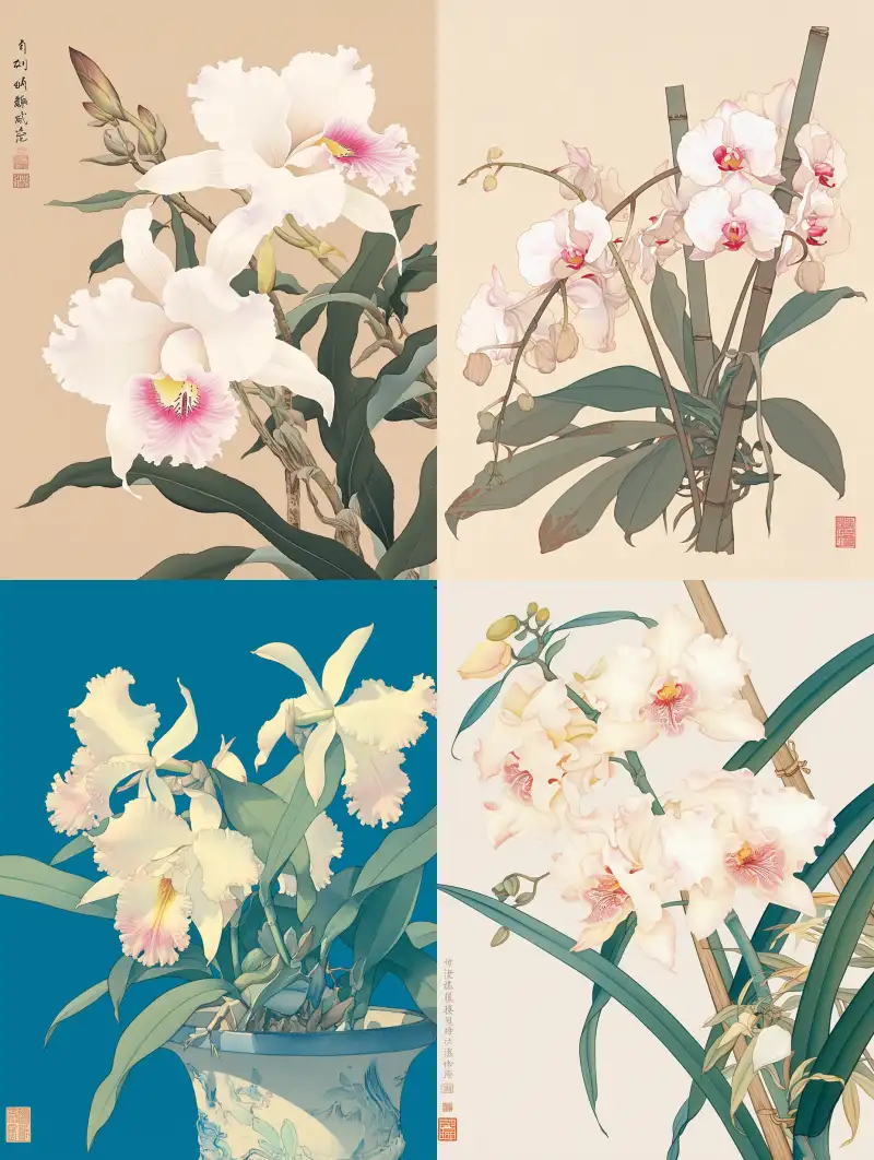 Midjourney Bot 更新时间:2024-06-21 00:01A beautiful white orchid with a colorful woodcut printmaking style. Simple lines and colors depict pink flowers, white leaves, and exquisite details. High definition resolution displays exquisite illustrations with concise and exquisite details. This Chinese painting has the best quality --ar 3:4 --niji 6