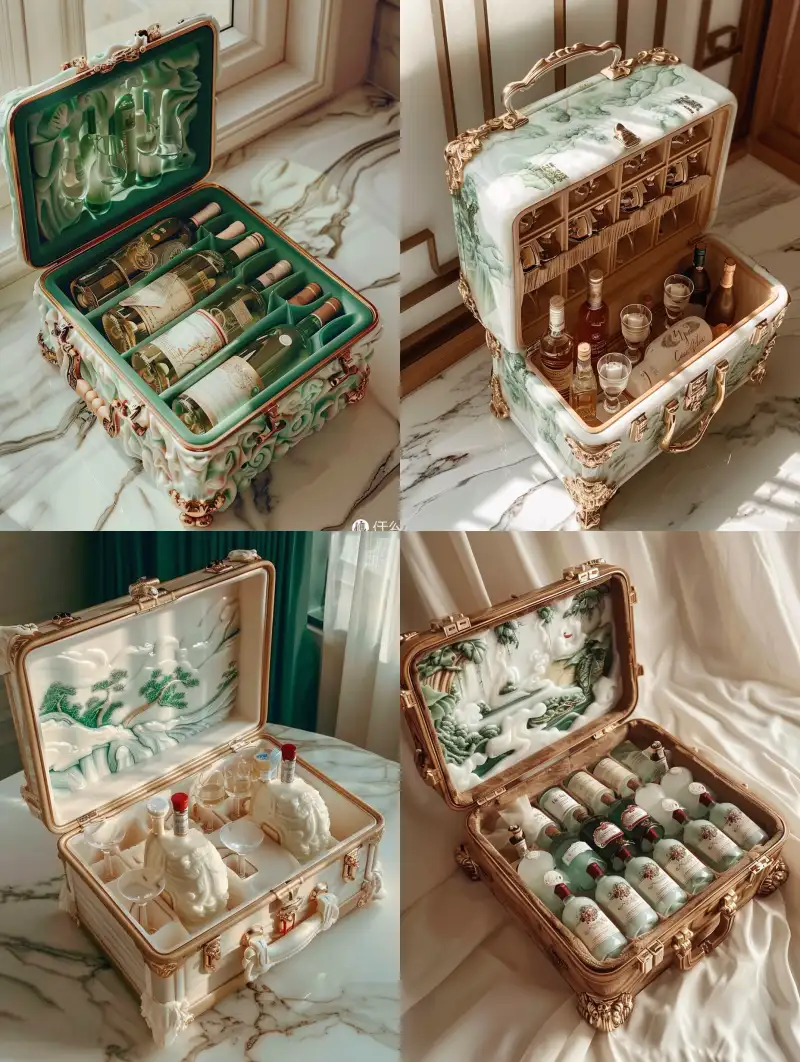 Midjourney Bot 更新时间:2024-06-20 00:02From a bird's-eye view, a beautiful suitcase is opened, revealing various wine bottles, glasses, XOs, cocktails. The drone takes photos, with a clear gradient background and a surreal style. The exquisite photography creates a cute movie atmosphere with prominent elements. The camera captures the moment the suitcase is opened, with high contrast, clear details, and a perfect blend of light and dark, presenting a lovely atmosphere. --sref