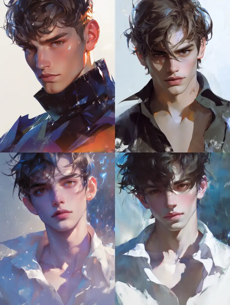Midjourney Bot 更新时间:2024-06-19 00:03A comic like and super handsome young male assassin, thick coated, sharp and slender eyes, lips slightly downward showing a majestic aura, cold white skin color, brown eyes, smooth and smooth face, fluffy hair, perfect facial features, shirt, thick coated, watercolor, minimalist, CG rendering, ultra-high definition detail rendering, 8K, dynamic, mid to close range, sparkling, high sharpness, strong contrast, incredible facial delicacy and clarity, dazzling light effect background, light tones, spatial sense, natural, fresh, transparent, professional portrait photography grade light effect --no Beard, earrings, wrong hand, earrings, wrinkles, hat --ar 3:4 --niji 6