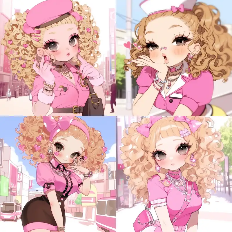 Midjourney Bot 更新时间:2024-06-19 00:04A cartoon female stewardess with smooth face, oval face, beautiful black eyes, long eyelashes, light powder blusher, delicate nose, full mouth and light pink lipstick. Yellow curly hair. Wearing a flight attendant short skirt. Many accessories, necklaces, earrings. Shiny crystal. Pose. The bustling streets of Seoul. Background details and meticulousness. Half body. Q-version. Thick coating. Retro style flight attendant. Japanese thick colored manga style. --sref