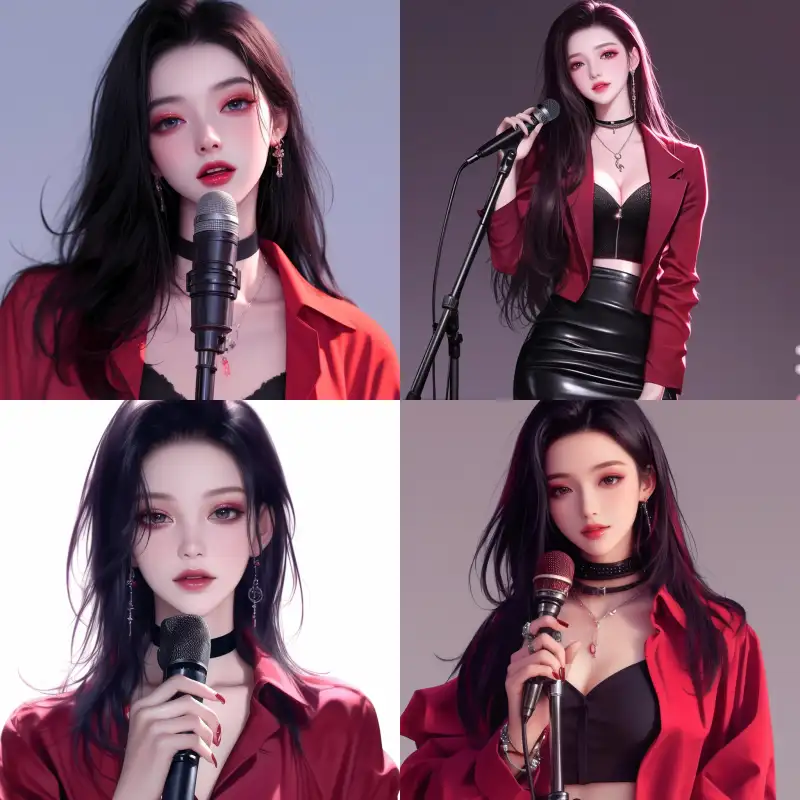 Midjourney Bot 更新时间:2024-06-14 00:08A beautiful Korean idol girl with a half body photo of a character, exquisite facial features and makeup, exquisite design, fashionable clothing, rich colors, trendy and cool, and strong sense of detail. Handheld wireless microphone for singing, pure white background, high quality, high detail, high resolution, ultra clear. Canon 7, professional shooting, rich and realistic details, 16K --sref