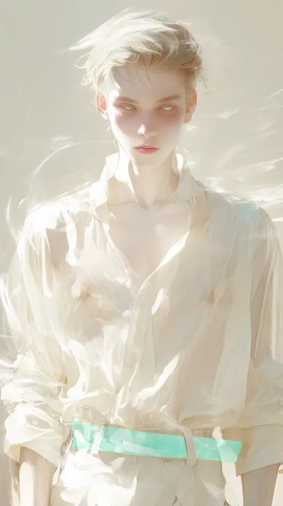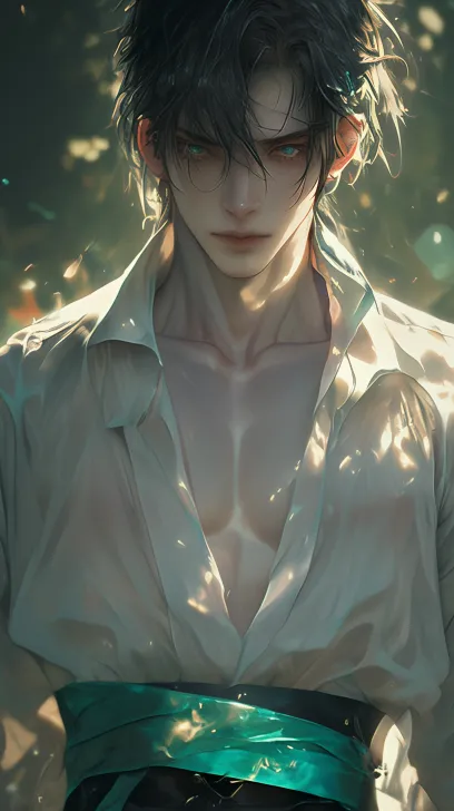 Midjourney Bot 更新时间:2026-02-14 00:38一个俊美动漫男人,冷白皮,透明感肌,柔焦边缘、虚化背景、眼神模糊、唯美柔和的光影,穿着米白色的衬衫,玉石腰带,低饱和度暖调、柔和光晕、丁达尔效应、细腻笔触(油画) --ar 9:16 --style raw --stylize 180 --niji 6 --no no