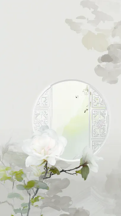 Midjourney Bot 更新时间:2026-02-14 00:39高级极简水彩插画,禅意美学。纯白背景,透过一个线条勾勒的雕花漏窗或圆月门向内望去,形成天然画框。框内焦点处,一枝开得正盛的白玉兰剪影伸出。其后是虚化的、层层叠叠的春色:朦胧的新绿、斑驳的花影,色调清新,背景柔美,氛围宁静、深邃,仿佛将整个春天的精华都压缩在了这一框之内。 --ar 9:16 --v 7 --stylize 10