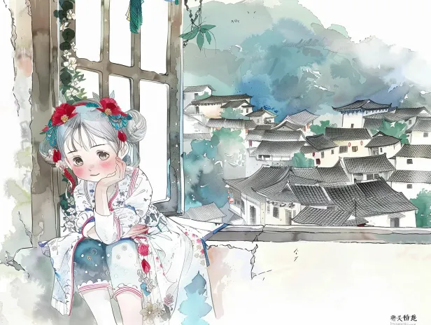 Midjourney Bot 更新时间:2026-02-14 00:52清新动漫水彩绘本,治愈系生活美学,采用让·雅克·桑贝和Yishi Chen风格的插画,苗族小姑娘趴在窗台,看奶奶绣花,窗外是梯田与吊脚楼,彩色简洁背景,运用彩铅与水彩混合媒介创作,丙烯厚涂,意境深远,色彩饱满,笔触细腻,水彩渲染,怪诞美学,梦幻,童话,随机性,故事性 --ar 4:3 --v 6.0 --stylize 100 --sref https://images.gogpt.vip/aigf/m_origin/20260213/1965894/v7zaqdidfiy6n154.jpg https://images.gogpt.vip/aigf/m_origin/20260213/1965894/q6ohxsc1vf8ma7yw.jpg https://images.gogpt.vip/aigf/m_origin/20260213/1965894/7r659xkfwecxohf4.jpg --sw 754