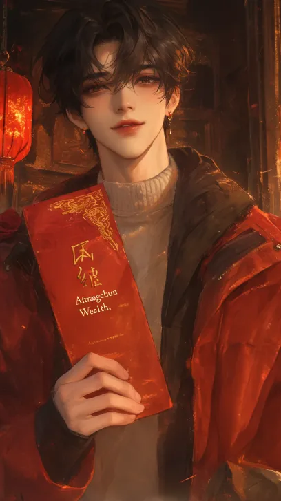 Midjourney Bot 更新时间:2026-02-14 00:53一位清俊温柔的东亚少年,身处充满年味的古风市井街道,前景是巨大的红色烫金装饰,带有金色龙纹与梅花图案,金粉质感闪耀;少年手持写有金色“招财”书法字体的红底挥春,另一只手拿着红色装饰的冰糖葫芦。他留着干净利落的黑色微卷短发,身穿红色软糯毛衣搭配白色内搭与白色下装,面带温柔清爽的微笑看向镜头;背景是错落的古风木质建筑、悬挂的黄色灯笼,街道上有模糊的人群,营造热闹的春节市集氛围;自然光与街头暖光交织,浅景深效果突出主体,画面色彩浓郁喜庆,胶片复古质感,高清细节,原比例构图,写实人像摄影,动态抓拍感,马年新春氛围拉满。 丰满妆容,细腻肤质,最佳质量,16K质量,超高清,超精细,高分辨率,半写实动漫风格,全身角色,头部特写,全身,全景,半身, --ar 9:16 --stylize 283 --niji 6 --profile 7wcv7ej qj3ncyd