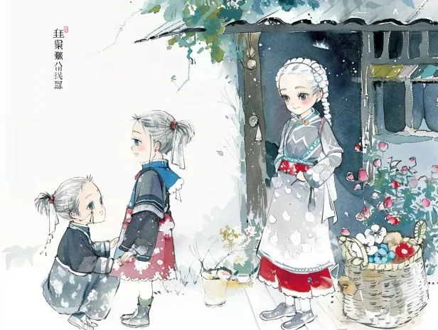 Midjourney Bot 更新时间:2026-02-14 00:54清新动漫水彩绘本,治愈系生活美学,采用让·雅克·桑贝和Yishi Chen风格的插画,苗族老奶奶,彩色简洁背景,运用彩铅与水彩混合媒介创作,丙烯厚涂,意境深远,色彩饱满,笔触细腻,水彩渲染,怪诞美学,梦幻,童话,随机性,故事性 --ar 4:3 --v 6.0 --stylize 100 --sref https://images.gogpt.vip/aigf/m_origin/20260213/1965894/v7zaqdidfiy6n154.jpg https://images.gogpt.vip/aigf/m_origin/20260213/1965894/q6ohxsc1vf8ma7yw.jpg https://images.gogpt.vip/aigf/m_origin/20260213/1965894/7r659xkfwecxohf4.jpg --sw 754