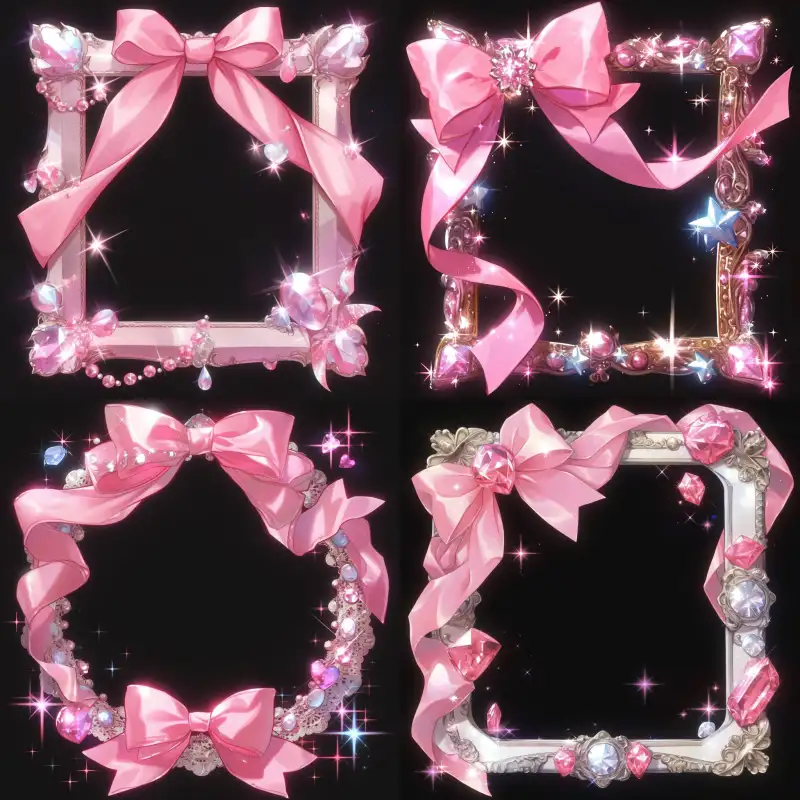 Midjourney Bot 更新时间:2024-06-07 00:10A photo frame with lace, bow, and ribbon, with perfect detail handling, clip art style, black background, anime style, high-quality, high-resolution, cute, dreamy, and professional quality lighting and lighting. Clear lines, no shadows or noise. --sref