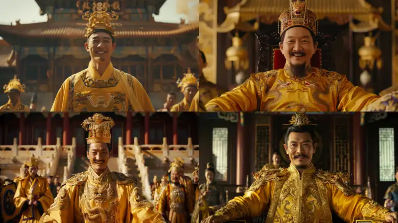 Midjourney Bot 更新时间:2024-06-08 00:02In ancient China, in the imperial palace, an emperor wearing a yellow dragon robe, smiling, upper body, court, council, best picture quality, cinematic quality, domineering, ancient architecture, best quality, best picture quality, domineering --ar 16:9 --v 6.0