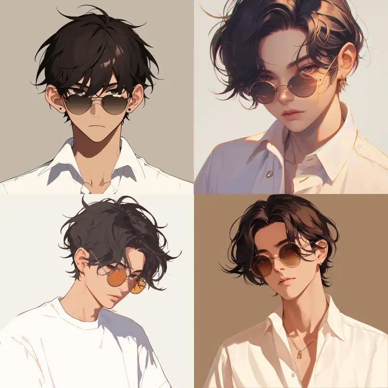 Midjourney Bot 更新时间:2024-06-06 00:03A boy with black hair, wearing sunglasses and a white shirt set in an anime art style, has a charming portrait with dark gray, light brown, and light amber tones. Cartoon characters have detailed facial features --ar 1:1 --niji 6