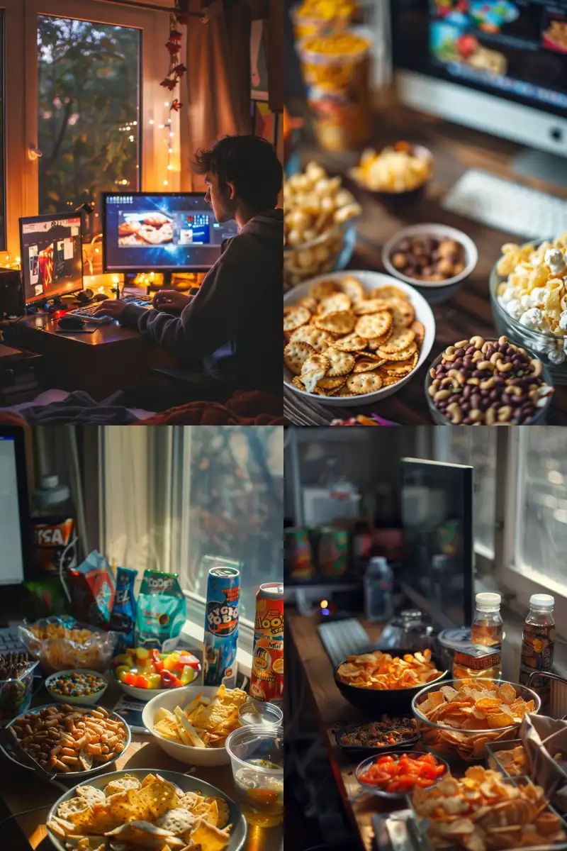 Midjourney Bot 更新时间:2024-06-04 00:00Snacks, very tempting, set against the backdrop of the desktop in college dormitories, --ar 2:3 --v 6.0
