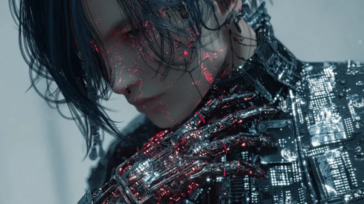 Midjourney Bot 更新时间:2026-04-01 00:16提示:【人物设计】男性,身材修长,全身相,面色苍白。 【脸型】:尖下巴,凤眼泛着红光的日晷图案,凌乱的黑色摩登发型。 【服装】:虚幻引擎5渲染,未来派不对称长款黑色高科技风衣,由哑光碳纤维面料制成,复杂的3D打印电路图案。 【配件】:左手腕周围细细的发光红色纳米丝。 [风格]:辛烷渲染、8K、电影灯光、纯白色背景、织物纹理上的光线追踪、无武器、都市科技服装。 --ar 16:9 --v 7 --stylize 100 --no (中国古代服装:1.5)、(汉服:1.5)、(插图:1.4)、(绘画:1.4)、长袍、发夹、剑、奇幻、(最差质量:2)、(低质量:2)、低分辨率、额外手指、畸形手、畸形四肢、扭曲脸、不良解剖结构、模糊、水印、文字、签名、标志、纹理、噪音、 (动画:1.4),(卡通:1.4),草图,低多边形,平面着色,塑料皮肤,过饱和,霓虹灯发光,凌乱的背景,背景上的阴影,剪短的脚,不对称布局。