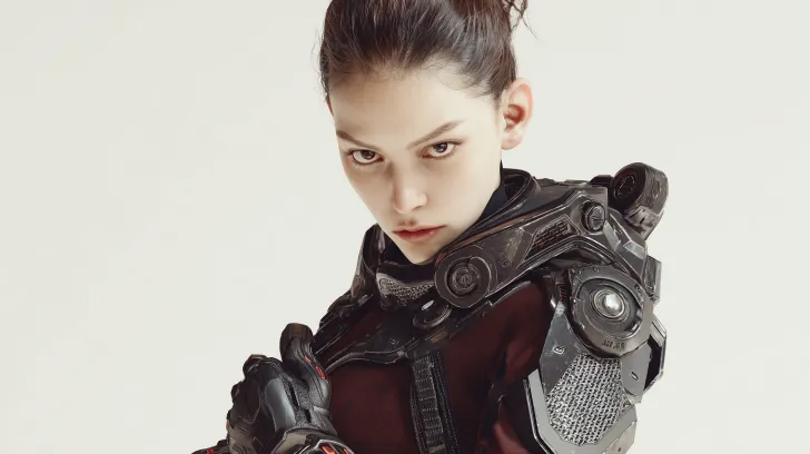 Midjourney Bot 更新时间:2026-04-01 00:20角色设定:【六视图,角色设计】女性,体格健壮,气质干练,全身相。【面部】:利落的黑色短波波头,目光坚定,皮肤毛孔清晰可见。【服装】:线条流畅的模块化战术外骨骼装甲,哑光黑色复合装甲板,集成深红色碳纤维肩甲,肩甲上激光蚀刻几何云纹图案。【配件】:前臂佩戴发光的红色量子脉冲护手。【风格】:虚幻引擎5,Octane渲染器,光线追踪,高科技工业美学,纯白色背景,平面光照,无武器。 --ar 16:9 --v 7 --stylize 100 --no (中国古代服装:1.5)、(汉服:1.5)、(插图:1.4)、(绘画:1.4)、长袍、发夹、剑、奇幻、(最差质量:2)、(低质量:2)、低分辨率、额外手指、畸形手、畸形四肢、扭曲脸、不良解剖结构、模糊、水印、文字、签名、标志、纹理、噪音、 (动画:1.4),(卡通:1.4),草图,低多边形,平面着色,塑料皮肤,过饱和,霓虹灯发光,凌乱的背景,背景上的阴影,剪短的脚,不对称布局。