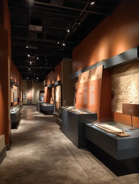Midjourney Bot 更新时间:2026-04-02 00:00编钟非遗考古复原展厅 场景描述提示词 核心主题为编钟非遗考古与保护历史溯源,整体空间以沉稳青铜暗纹色为基底,搭配浅米色展墙、暖调聚焦射灯,营造庄重沉浸式的考古文化氛围,凸显非遗文物的历史厚重感;以曾侯乙编钟 1978 年出土与后续保护为叙事主线,沿动线布局三大核心展陈板块,动线流畅、层层递进还原编钟非遗考古与保护全历程;入口设大型考古场景复原展板,搭配出土纪实老照片 + 文字解说,清晰标注出土时间、地域,梳理非遗文物保护缘起;核心区域置考古发掘复刻实景展柜,还原现场土层结构,陈列编钟残件复刻品、洛阳铲 / 毛刷等传统考古工具,标注工具在非遗初期保护中的使用方法;展柜旁设 AI 全息投影核心体验区,环形幕布循环播放考古发掘全过程、编钟残件清理 / 固定 / 转运的初期非遗保护实景,全息影像融入非遗传承人讲解,解析文物现场应急保护、青铜残件防氧化处理等非遗技艺要点,实现光影虚实交错的沉浸式体验;展厅深处设编钟非遗保护历史脉络展墙,以时间轴形式梳理出土至今的保护历程,标注各阶段核心成果、技艺突破点、非遗传承人与专家事迹,陈列不同时期保护工具复刻品,对比传统非遗保护技艺与现代科技的融合发展;展墙嵌入触控交互屏,支持游客轻触查看详细非遗知识,AI 灵韵实时联动补充讲解、解答疑问;整体展陈兼顾专业性与体验性,所有实物展陈配简洁易懂的非遗知识解说,通过全息投影、触控交互打破被动看展模式,让游客主动参与非遗历史溯源,打造感知编钟非遗考古与保护匠心的核心沉浸式空间。 --ar 3:4 --v 7 --stylize 100