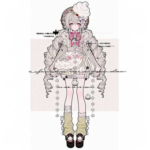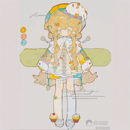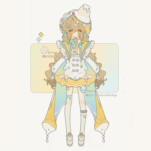 Midjourney Bot 更新时间:2026-02-13 00:20https://images.gogpt.vip/aigf/m_origin/20260213/2056425/gxaggtw0dwe95xsx.jpeg 帮我设计一个人物,二次元平涂风格。 人物发型为双低马尾,人物头上带一个贝雷帽,贝雷帽一侧扁平,挤了一大坨立体糖霜,帽檐别一圈迷你彩色糖珠。人物上衣为收腰马甲搭配内搭薄打底,人物领子为夸张糖霜翻领,不是普通娃娃领,是尖角大翻领,铺满肩膀,领边呈不规则滴落状,像奶油淋面。围裙,不是普通围裙,是蓬起的及腰围裙短裙撑——围裙本身自带挺括弧度,像倒扣的纸杯蛋糕托。正面一整排透明糖果扣,从胸口排到裙摆边缘。人物穿马卡龙色系上窄下宽袜套,鞋子为厚底小皮鞋,鞋面上有两个纸杯蛋糕。 --ar 1:1 --c 6 --stylize 41 --iw 0.25 --niji 7 --sref https://images.gogpt.vip/aigf/m_origin/20260213/2056425/gxaggtw0dwe95xsx.jpeg --sw 447