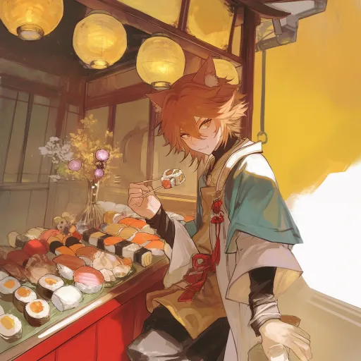 Midjourney Bot 更新时间:2026-02-13 00:22https://images.gogpt.vip/aigf/m_origin/20260213/167821/y6vz7gb1c2tjb83k.png https://images.gogpt.vip/aigf/m_origin/20260212/167821/kybnvx974eey2nf7.png https://images.gogpt.vip/aigf/m_origin/20260213/167821/2oifiqfytn3ow4pa.png https://images.gogpt.vip/aigf/m_origin/20250825/167821/8os5r3v80du9a2vn.png 红发猫耳的男青年,在寿司店吃寿司和天妇罗,面前堆满了寿司和天妇罗,背景是黄色的灯笼,整体氛围是暖黄色,鱼眼透视,夸张透视,平视 --ar 1:1 --stylize 129 --iw 0.25 --niji 6 --sref https://images.gogpt.vip/aigf/m_origin/20250508/167821/xu8xvyy27rd1vbi8.jpg https://images.gogpt.vip/aigf/m_origin/20250508/167821/wx5hp38nbpmcre0w.png https://images.gogpt.vip/aigf/m_origin/20250507/167821/kji4syaird1ivsbs.jpg https://images.gogpt.vip/aigf/m_origin/20241007/167821/rk0ocy3vcf4v7s7u.jpeg --cref https://images.gogpt.vip/aigf/m_origin/20250825/167821/8os5r3v80du9a2vn.png https://images.gogpt.vip/aigf/m_origin/20260213/167821/2oifiqfytn3ow4pa.png https://images.gogpt.vip/aigf/m_origin/20260213/167821/y6vz7gb1c2tjb83k.png --cw 17 --sw 213