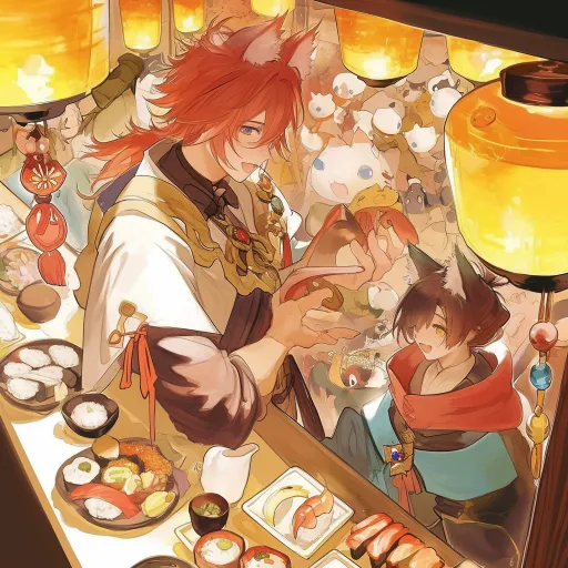 Midjourney Bot 更新时间:2026-02-13 00:20https://images.gogpt.vip/aigf/m_origin/20260213/167821/y6vz7gb1c2tjb83k.png https://images.gogpt.vip/aigf/m_origin/20260212/167821/kybnvx974eey2nf7.png https://images.gogpt.vip/aigf/m_origin/20260213/167821/2oifiqfytn3ow4pa.png https://images.gogpt.vip/aigf/m_origin/20250825/167821/8os5r3v80du9a2vn.png 红发猫耳的男青年和一个黑色马尾女生,在寿司店吃寿司和天妇罗,面前堆满了寿司和天妇罗,背景是黄色的灯笼,整体氛围是暖黄色,鱼眼透视,夸张透视,平视 --ar 1:1 --stylize 129 --iw 0.25 --niji 6 --sref https://images.gogpt.vip/aigf/m_origin/20260212/167821/6gljbmp68mhoreeo.jpg https://images.gogpt.vip/aigf/m_origin/20250508/167821/xu8xvyy27rd1vbi8.jpg https://images.gogpt.vip/aigf/m_origin/20250508/167821/wx5hp38nbpmcre0w.png https://images.gogpt.vip/aigf/m_origin/20260212/167821/hpv26vjpud96fhnh.jpg https://images.gogpt.vip/aigf/m_origin/20260204/167821/2vl3qghyyb3gq2yr.png --cref https://images.gogpt.vip/aigf/m_origin/20250825/167821/8os5r3v80du9a2vn.png https://images.gogpt.vip/aigf/m_origin/20260213/167821/2oifiqfytn3ow4pa.png https://images.gogpt.vip/aigf/m_origin/20260213/167821/y6vz7gb1c2tjb83k.png --cw 17 --sw 213