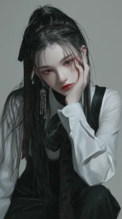 Midjourney Bot 更新时间:2026-02-13 00:11朦胧柔焦感,非真人细腻氛围刻画。极致雌雄莫辨,服饰简约暗黑显冷感禁欲,BJD画风(无娃娃关节),细腻油画伪厚涂风格,2.8次元暗黑学院风立绘。暗黑学院风成年形象(气质慵懒疏离),清冷颓靡,皮肤冷白泛薄青调,眉眼微阖倦怠,纯白凌乱长直发(碎发遮眼+发丝毛流感),唇瓣淡红微张,身着白衬衫外搭黑系装饰(红纹暗缀+领口微敞),耳饰为银质长流苏款,手持复古雕花厚书(指节纤细骨感),动作慵懒蜷坐,面部聚焦(面容精致清隽),身材清瘦纤薄,精美数字艺术插画,8K最高清,超细节发丝光泽(凌乱带笔触),衣料哑光肌理+衬衫微透质感,浅调留白背景,病娇慵懒感,笔触细腻晕染,整体氛围清冷疏离。 油画质感,伪厚涂技法,柔焦朦胧氛围,高清8K画质,画面精致细腻 纯白凌乱长直发(碎发遮眼+发丝毛流感) 白衬衫外搭黑系装饰(红纹暗缀+领口微敞) 唇瓣淡红微张,眉眼微阖倦怠,皮肤浅色 --ar 9:16 --v 7 --stylize 100